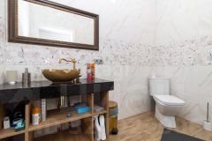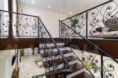 Планировка первого этажа функционально объединяет просторную кухню-гостиную и прачечную, а также включает гараж на два автомобиля. На второй этаж ведет лестница с кованными перилами, где расположены три изолированные спальни, объединенные выходом на большой балкон, и светлый холл с панорамными окнами, открывающими вид на город.