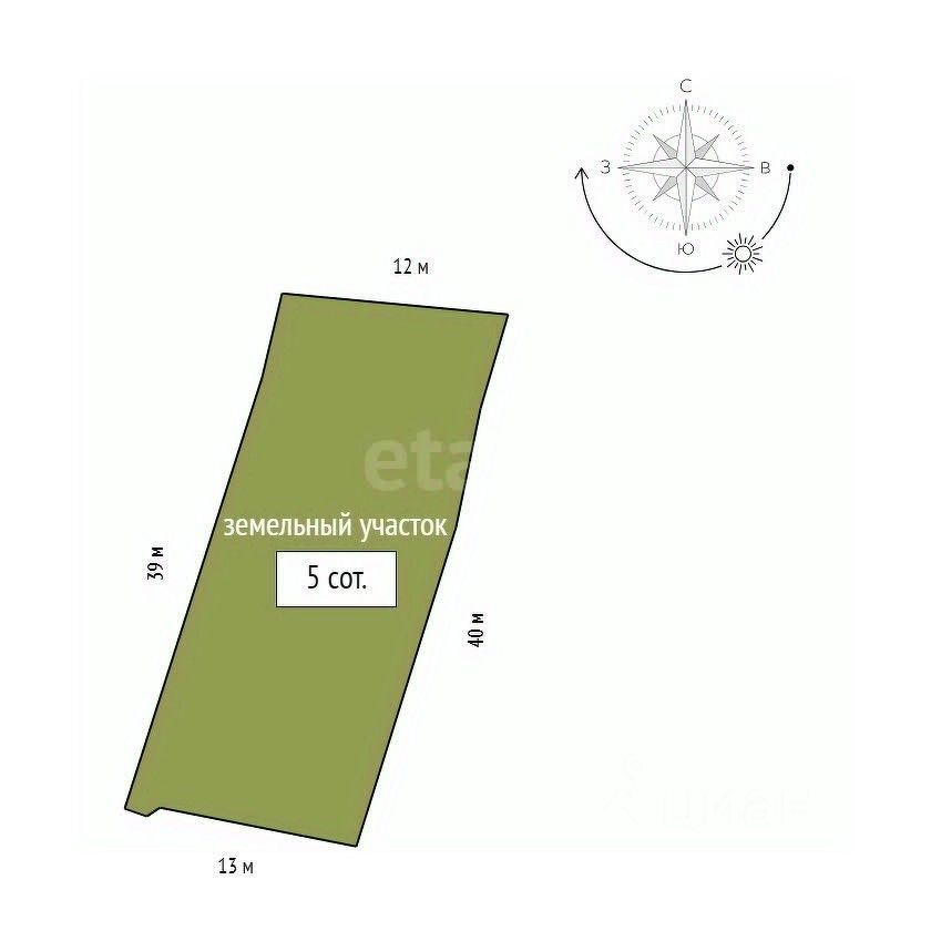 Площадь земельного участка составляет 5,4 сотки.