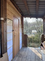 На первом этаже находится большая комната с отопительной печью и просторная летняя веранда.