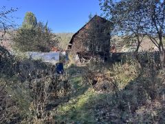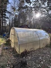 На территории участка расположены хозяйственный блок для инвентаря, теплица из поликарбоната, а также плодовые насаждения — плодоносящие яблони, малина и земляника.