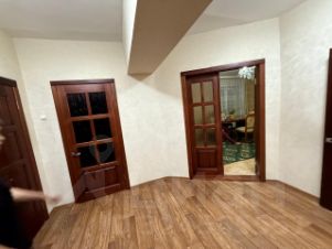 В доме выполнена отделка: первый этаж полы линолеум, стены обои, выровненные потолки, в двух комнатах натяжные потолки, все двери из массива дерева.