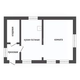 Основное здание имеет практичную планировку: изолированная спальня и объединенное пространство кухни-гостиной.