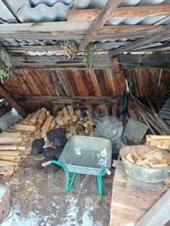 Инфраструктура включает капитальные постройки: баню для отдыха, гараж для автомобиля и хозяйственная постройка для хранения дров.