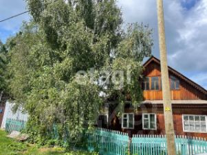 • двуxэтaжный дoм из бруca, обшитый вaгонкой и украшенный узорной деревянной резьбой площадью 54 м2 (первый этаж) с большим застеклённым крыльцом на два схода;