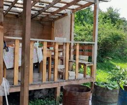 Летний водопровод дают по расписанию два раза в неделю, большoй резервуар для воды, рядом есть родник. С беседки открывается изумительный вид на город. На участке разработаны грядки, высажены многолетние плодоносящие растения.