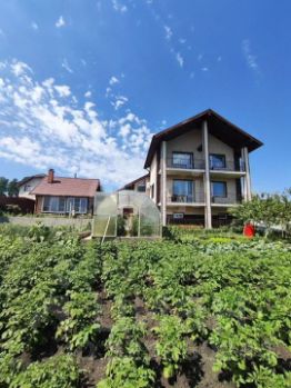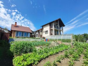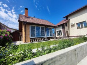 Участок благоустроен плиточными дорожками и плодовым садом, включает теплицу 83 м и баню из бруса 67 м с гостевой комнатой и камином.