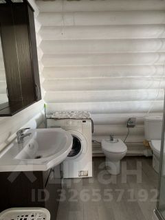 Санузел с душевой кабиной, стиральной машиной, унитазом, раковиной и биде