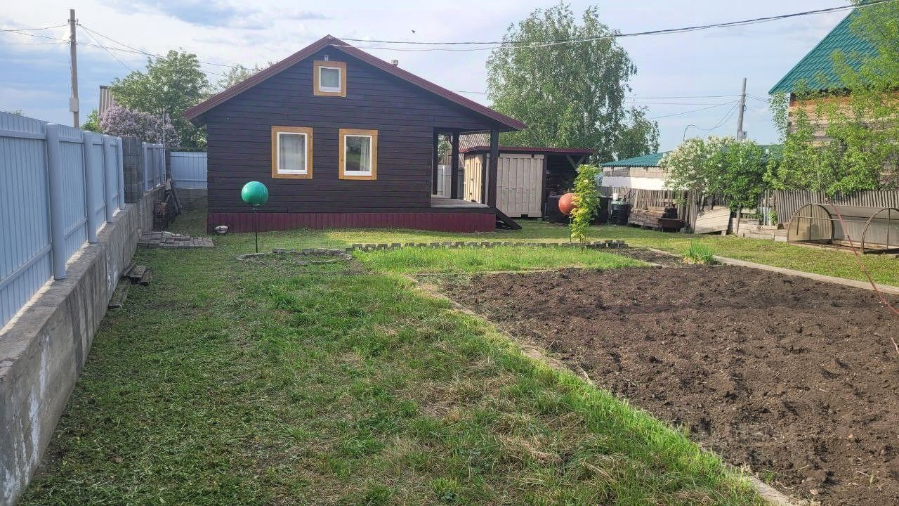 Продам дом. Район СНТ Мебельщик. Участок 6 соток. Огорожен капитальным забором (залит 1 метр х 35 см бетона + металлопрофиль). Парковка. Участок обработан газон, насаждения (вишня, яблоня, участок под посадки картофеля). На участке расположен дом (строганный брус 18 утеплен и обшит внутри имитацией бруса), 48м2, фундамент винтовые сваи. Жилая площадь 36м2, гостиная 20 м2 и спальня. Есть чердак, где возможно установить накопительный бак для установки водоснабжения. Отопление калориферы и современная печь-камин. Вся проводка медная и пожаробезопасная. Вся мебель остается. Большая терраса. Также фундамент дома предусматривает возможность достройки второго жилого этажа. Баня 4х5м. В бане на крыше накопительный бак для воды. Душ в моечной. Парная на 6 человек. Баня с электрокаменкой с возможностью парилки. В бане система слива, предотвращающая застой воды под строением. Фундамент бани также винтовые сваи. За сет фундаментов строения на участке не гуляют. Туалет на улице. Сигнализация. Дом возможно использовать для круглогодичного проживания, а также в коммерческих целях- под посуточную сдачу в аренду для отдыха. Электричество заведено 380. Торг обсуждается.