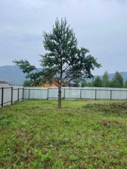 Манская поляна. Участок площадью 10 соток расположен в живописной местности, в близости от леса и реки. На фото пример дома, который можно построить с подрядом по семейной или сельской ипотеке.