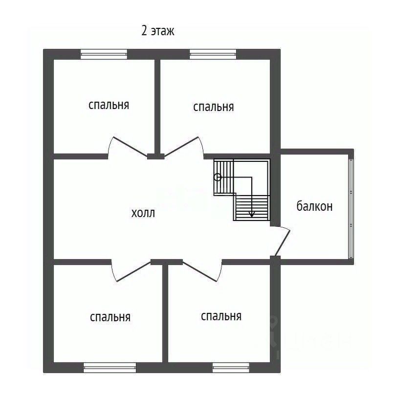 - На втором этаже балкон, холл и 4 комнаты.