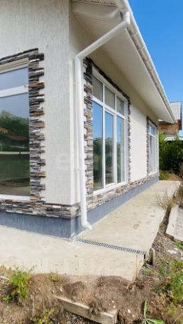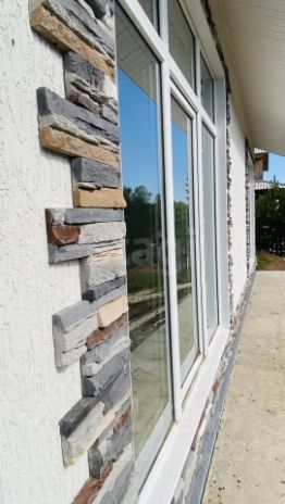 Внешняя отделка — штукатурка+декоративный камень.