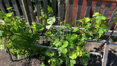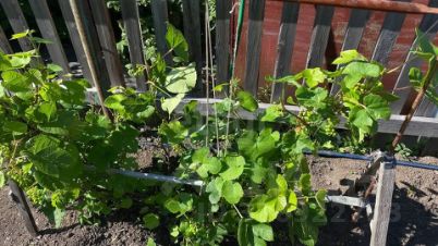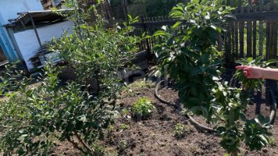 Участок разработан, имеются насаждения, грядки, картофель, земля плодоносит очень хорошо. Из насаждений - груши, вишня, жимолость, ВИНОГРАД, редкий сорт яблок - колоновидная яблоня.