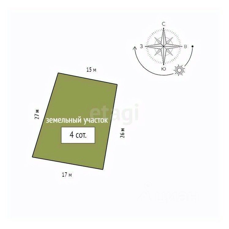 Участок: 4 сотки.
