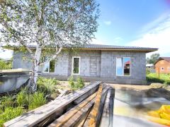 Одноэтажный дом состоит из 3 не проходных просторных спален и большой кухни гостиной с выходом на террасу и видом на березовый лесочек!