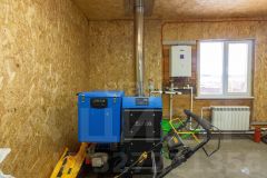 Отопление — твердотопливный автоматический котел с бункером, также есть электрокотел с дистанционным управлением.