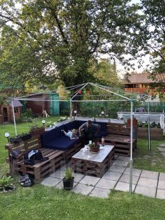 На участке, как и положено хорошей даче, есть баня, маленький гараж, дровяник, теплица. Обустроенная зона отдыха в центре участка.