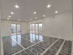Одноэтажный дом имеет продуманную планировку с изолированными комнатами. В нем расположены три спальни и просторная кухня-гостиная с выходом на террасу, где можно собираться всей семьей и принимать гостей. Получистовая отделка позволит вам создать интерьер по своему вкусу: белый куб с натяжными потолками и точечным освещением, стены уже зашпаклеваны и готовы к оклейке обоями. Полы теплые, а бойлер на 108 литров обеспечит вас горячей водой. Септик установлен, что избавляет от лишних забот.