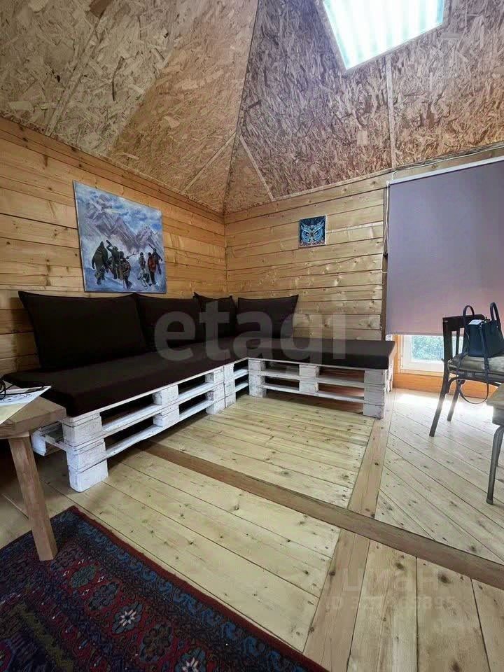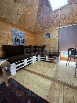 Дом размером 4,55 м включает одну комнату, летнюю веранду и мансарду. В доме установлена печь, которая быстро прогревает помещение в прохладную погоду. Состояние хорошее, можно пользоваться сразу. Есть рукомойник с водонагревателем — базовый комфорт уже организован.