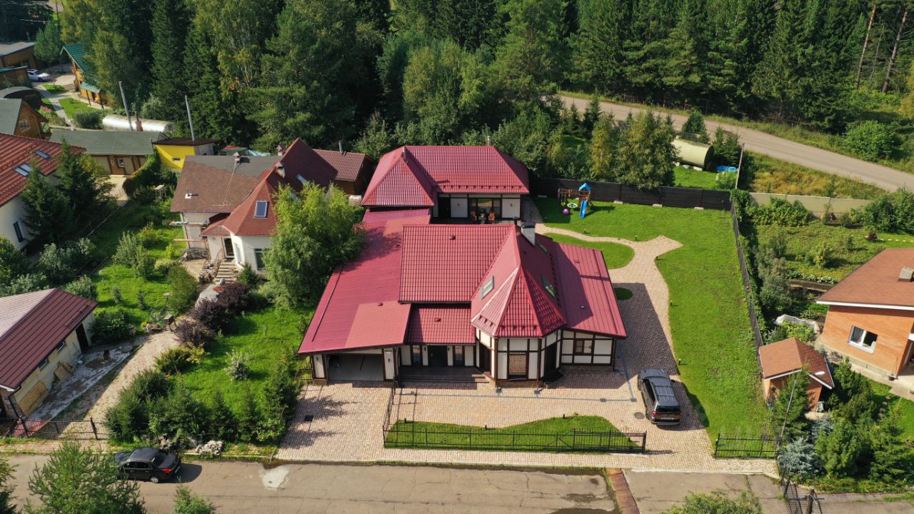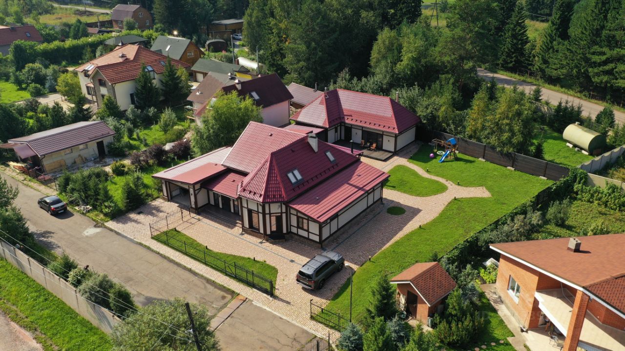 Продается усадьба состоящая из: двухэтажного дома с площадью 408 м² и гостевого дома с баней площадью 100 м² соединённые крытой террасой с зоной отдыха и барбекю.