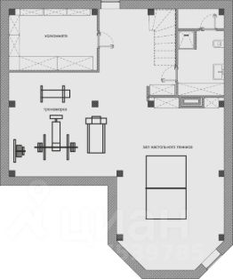 3. Цокольный этаж оборудован тренажёрным залом с теннисным столом, душевой и санузлом. Предусмотрена дополнительная комната, которую можно использовать как гостевую, игровую или зону отдыха.