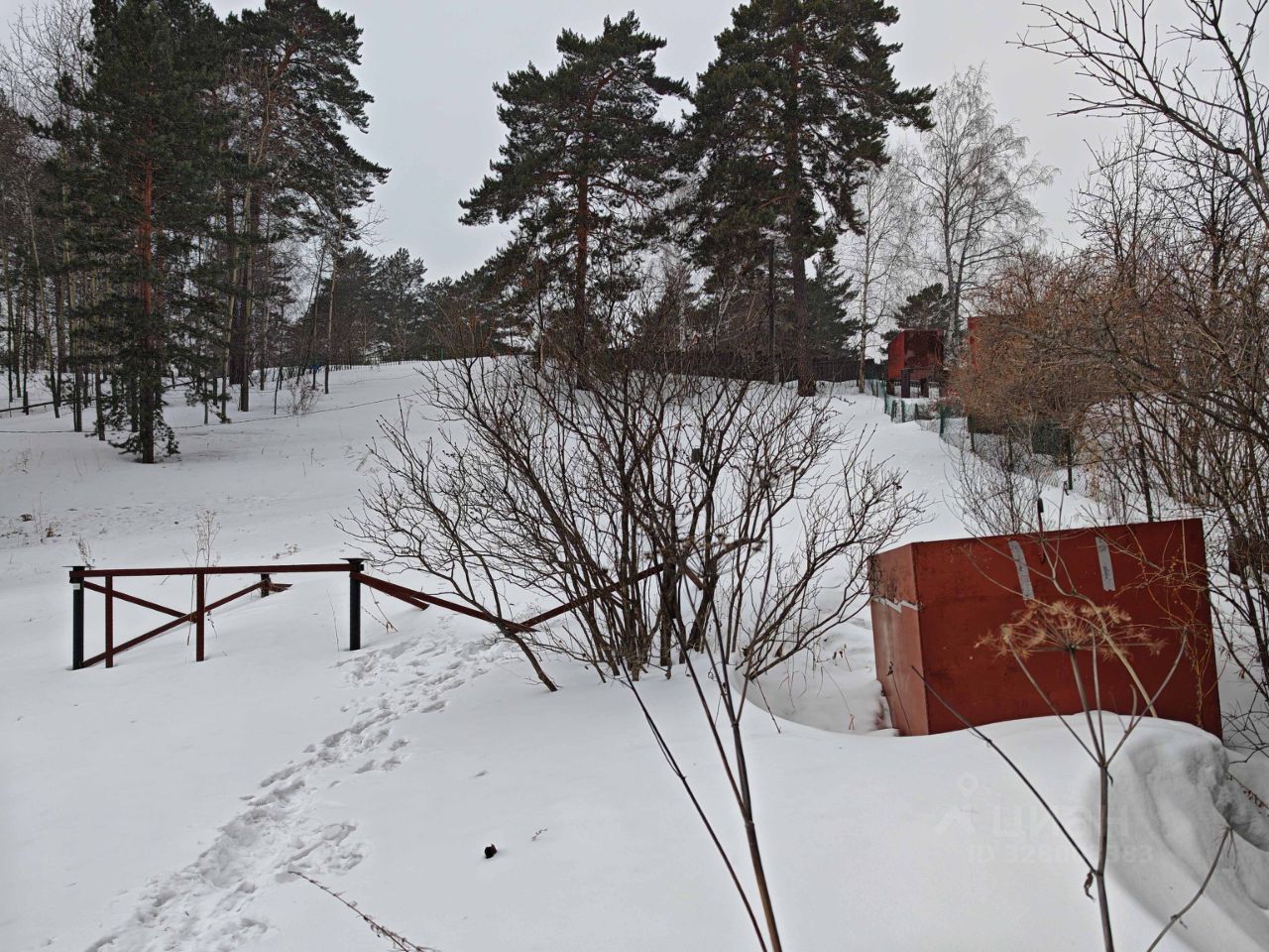 Участки имеют более ровную площадку на въезде и уклон в остальной части. Огорожен забором, имеется металлический гараж для хранения.