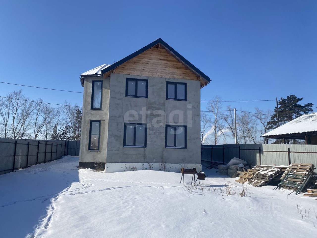 В доме залиты полы и оштукатурены стены, все готово к чистовой отделке, высота потолков 1 этажа 3 метра, 2 этажа 2,5 метра, лестница техническая . К дому пристроен теплый капитальный гараж, участок выровнен и огорожен, перед домом отсыпана парковка для нескольких автомобилей.