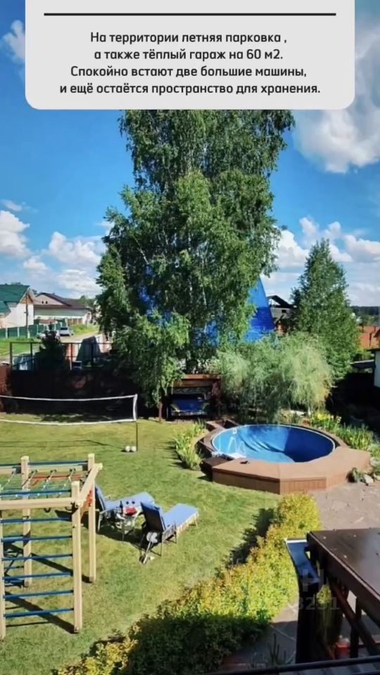 Также на участке есть детская спортивная площадка, мангальная зона с профессиональной мойкой, мангал, тандыр, стационарный бассейн 4,5 кв.м.,летний курятник с выгулом на 15 несушек. Ландшафтный дизайн с множеством многолетников, две теплицы и грядки. На всем участке грамотное уличное освещение. Дорожки вымощены природным песчаником, привезенным с Хакасии.