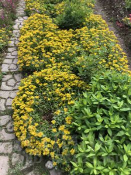 Мангал из природного камня. Организовано кострище (выложено камнем) По участку частично выложенные бетонной декоративной плиткой дорожки. Цветники.