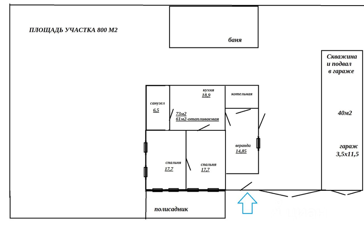 • Отапливаемая жилая площадь 61м2.
