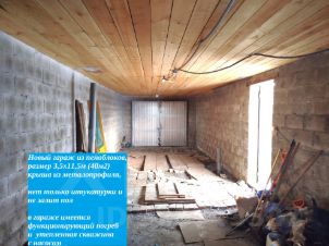 Из надворных построек имеется баня и гараж. Гараж новый построен из пеноблоков, площадь гаража большая, ворота и входные двери в гараж металлические качественные. В гараже имеется погреб для круглогодичного хранения овощей и продуктов, а также утепленная скважина с глубинным насосом. Вода из скважины подается в дом, поэтому в доме имеется водообеспечение, водопровод проложен из гаража в дом со значительным углублением.