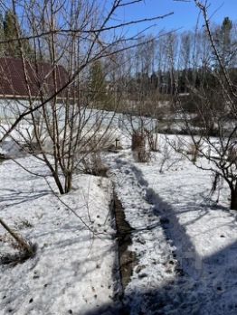 Участок полностью благоустроен: здесь расположен гараж с въездом с улицы, своя скважина и септик, несколько практичных теплиц и полноценная баня. Ландшафтный дизайн дополняют плодово-ягодные посадки. Окружение радует природой — поселок расположен среди лесов и озер.
