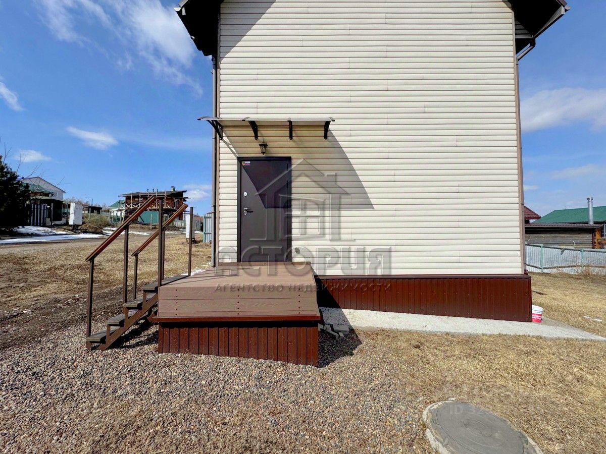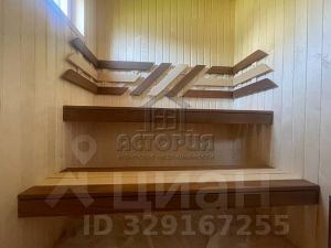 На первом этаже расположились просторная кухня-гостиная с панорамными окнами, котельная, сауна, санузел. На втором этаже две спальни и кабинет. Установлена новая красивая лестница из лиственницы, ведущая на второй этаж.