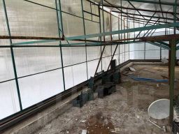 Теплица 70 кв.м: забетонированные полы с подогревом (антифриз), печь для отопления.