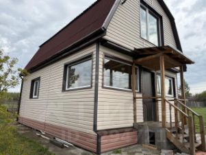 Дом в два этажа, сделан по каркасной технологии, современная из сайдинга облицовка, и баня из двух этажей. Дом с закрытым тепловым контуром, установлены окна и двери. Отделку в доме можно сделать на ваш вкус. В бане установлена печь, тоже закрытый тепловой контур. Парилка обшита осиной. Баня полностью готова, дом необходима внутренняя отделка!