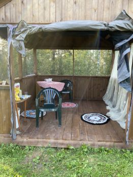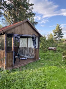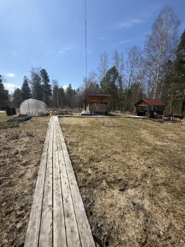 продаю хорошую дачу, окружена с трех сторон лесом с грибами, ягодами и полезными травами. Расстояние от трассы до калитки 4 км., есть хорошая , ровная дорога по лесу, путь еще короче получается. Общая площадь земли состоит из двух участков вместе , 12 и 8 соток. по отдельности не продаю, покупали , для того что бы не было соседей, будущий собственник может продать ее самостоятельно, если много, кадастровые номера разные. Дом два этажа, на первом этаже две спальни, очень светлые, много окон. Из спален через дверь выход в просторную кухню , примерно 12 квадратов. Дом из хорошего бруса, с современным ремонтом, электрика вся новая, в доме проведен водопровод, слив в септик. Второй этаж готов к отделке под летнее проживание. Есть хорошая, большая баня из кругляка, 9 кв метров, новая. беседка 4*3, большая новая, два года ей примерно. Теплица новая, ставили в прошлом году. Дачу использовали для отдыха, поэтому несколько грядок , пара грядок с клубникой. есть большое дерево с иргой. есть жимолость, смородина, на территории растет кедр, я срываю веточки для бани, запах прекрасный. есть большой бак под воду, качают по расписанию из реки. Дача прекрасно расположена, соседи только через дорогу. Соседи прекрасные, приглядывали , пока нас не было. Забор из евро штакетника,тоже пару лет назад делали. Из вложений- я бы поменяла только туалет. Есть самоходная газонокосилка, отдадим. К дому пристроен большой гараж, храним там всякую утварь, при желании можно сделать въезд для машины и ставить ее в гараже. Около дома большая поляна, для парковки авто. Так же сделан заезд на участок. В метрах 300 магазин. Зимой дорогу чистят, ездили и в январе и в феврале, показалась лучше, чем летом))).