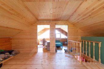 Внутренняя обивка дерево, пластиковые окна, лестница чисто деревянная, все экологические материалы, запах дерева по всему дому идет.