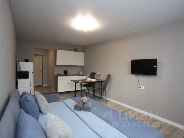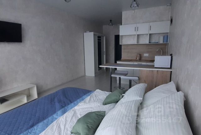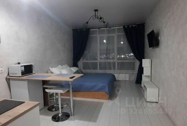 Предлагается вашему вниманию комфортная студия Заселение после 14: 00, выезд до 13: 00 Лояльная система скидок при длительном проживании В студии имеется всё для комфортного проживания, мыло, шампунь, гель Чистое постельное бельё, полотенца! Телевизор smart tv, микроволновка, чайник, wifi Шторы блэкаут! Чистая душевая кабина! В студии не курят и не устраивают шумные мероприятия
