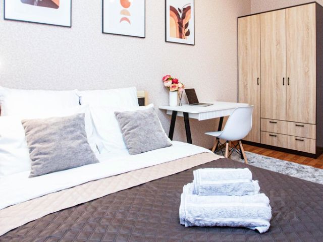 Если вы собираетесь остановиться в наших квартирах мы хотим чтобы вы наслаждались своим пребыванием, и это знак означает уважать других людей, проживающих в многоквартирном доме. Пожалуйста помните что в том же самом здании могут находиться другие жильцы. Пребывание домашних животных не разрешается, если это не было предварительно согласовано. Курение разрешено на балконе при закрытой балконной двери. В период с 22.00 до 9.00 должна соблюдаться тишина во избежание конфликта с соседями. Мы дорожим своей репутации и состоянием наших квартир, поэтому для проведения различных увеселительных мероприятий: дни рождения, вечеринки, праздники и т.п. наши квартиры не сдаются. На посидеть не сдаётся. Передвигать мебель запрещено.При нарушении арендаторами правил проживания расторгает договор в одностороннем порядке. При этом залог не возвращается. Расчётный час 12:00. За день до приезда нужно обязательно позвонить, подтвердить заказ. Для неподтвержденные заказа бронь снимается. Для командировочных оформление полного пакета документов, чеки с QR-кодом. Кухонный гарнитур, обеденная группа, состоящая из четырёх стульев и стола, холодильник, прихожая, диван, мягкий уголок, журнальные столики большой и малый, двуспальная кровать, тумбочка, встроенный платяной шкаф Квартира находится в самом центре города. Рядом развита инфраструктура с развлекательными и спортивными комплексами, кафе, супермаркетами и продуктовыми магазинами. Объект имеет хорошую транспортную доступность, рядом трамвайные и автобусные остановки.
