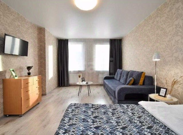 Сдам уютную студию на длительный срок. Имеется кухонный гарнитур, варочная панель, холодильник, диван двухспальный телевизор завезем, в коридоре вместительный шкаф купе с полками. в сан узле полноценная ванная, стиральная машинка автомат.Имеется застекленная лоджия.