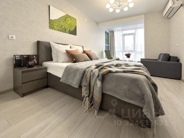 В апартаментах спальных мест - 4. Закрытый, охраняемый благоустроенный двор с современными детскими и спортивными площадками, территорией для прогулок, беседками и шезлонгами. Дизайнерский ремонт, телевизор SMART-TV, высокоскоростной Wi-Fi. Полностью оснащенная кухня: холодильник, микроволновая печь, варочная панель, чайник, столовые приборы, посуда, кастрюля, сковорода, кондиционер, фен, гладильная доска, утюг, большая двуспальная кровать, диван раскладывающийся полутора спальный, раскладное кресло кровать, постельное белье и полотенца, гель для душа, зубной набор, ватные диски и палочки, стиральная машина и стиральный порошок, постельные комплекты и полотенца доставляются из прачечной.
