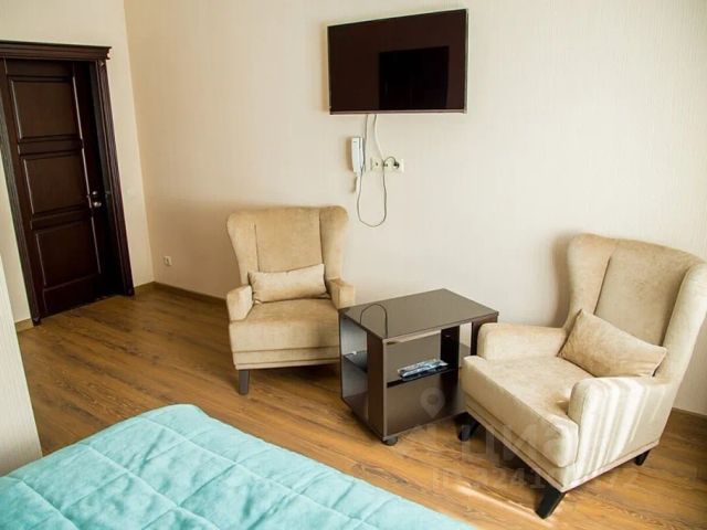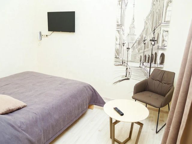 В номере: спальня, гостиная, кухня, кровать King-size, стол, стулья, шкаф-купе, сейф, центральное отопление, телефон, набор полотенец, набор постельного белья, телевизор, кабельное телевидение, интернет, Wi-Fi. В ванной: туалет, раковина, душ, средства личной гигиены, халат, тапочки, фен, зеркало. Гостям предлагается завтрак(оплачивается отдельно). На территории отеля находится сауна с бассейном (оплачивается отдельно). Дети до 5 лет размещаются бесплатно. Возможно размещение с животными(собаки/кошки до 5 кг - 700 руб./сутки, собаки более 5 кг - 1200 руб./сутки)