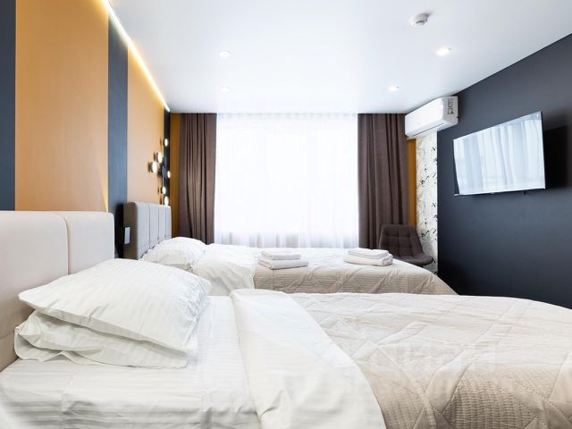 Встречайте гостиницу Vertex в самом сердце Шарыпово. "Вершина комфорта" — не просто слова, а философия, которая определяет все: от теплого приема на ресепшн до уюта в вашем номере. Гостиница Vertex — это точка притяжения для взыскательных гостей. Мы гордимся тем, что каждый из наших 14 номеров обладает собственным характером и тщательно продуманным дизайном интерьера — от сдержанной элегантины в классическом стиле до современных лаконичных решений. Вы можете выбрать уровень оснащения, который идеально вам подойдет: Для деловых поездок и романтического отдыха: Восемь двухместных номеров станут надежным убежищем. В них есть все необходимое для плодотворной работы: удобный письменный стол, хорошее освещение и стабильный Wi-Fi, а после — глубокий отдых на ортопедическом матрасе. Для компании или семьи с ребенком: Два трехместных номера предлагают дополнительное пространство и продуманную планировку, чтобы каждый гость чувствовал себя свободно. Для особых моментов: Наш Семейный номер с зонированием пространства создан для долгих вечеров в кругу близких. А Двухкомнатный люкс с гостиной и спальней — идеальное решение для торжеств, важных переговоров или тех, кто ценит исключительный уровень приватности и комфорта. Для жизни в своем ритме: Два просторных апартамента с полностью оборудованной кухней-гостиной — это идеальный выбор для гостей на несколько дней или тех, кто предпочитает самостоятельность. Здесь вы можете готовить любимые блюда, принимать гостей и чувствовать себя как дома. Независимо от категории, каждый номер в Vertex оснащен всем для безупречного пребывания: мощный кондиционер, современная мультимедийная техника (телевизор с цифровым ТВ), набор для приготовления чая и кофе, мини-холодильник. А также в номере-люкс, семейном номере и апартаментах есть собственная просторная ванная комната с набором банных принадлежностей. Ваш комфорт выходит за пределы номера. Мы предлагаем нашим гостям круглосуточную стойку регистрации, помощь в организации экскурсий по Шарыпово и его живописным окрестностям, а также заказ такси. Наше выгодное расположение позволяет легко добраться до ключевых точек города, будь то деловой центр или вокзал. В гостинице Vertex мы верим, что даже одна ночь, проведенная в идеально подходящем вам пространстве, может зарядить энергией и вдохновить на новые свершения. Доверьте нам ваш отдых — и почувствуйте, что значит быть на вершине. Комфортный трехместный номер площадью 23 кв.м с одной двуспальной и одной односпальной кроватью и дизайнерским ремонтом. В номере есть все необходимое для комфортного проживания: телевизор, холодильник, кондиционер, зеркало, фен.