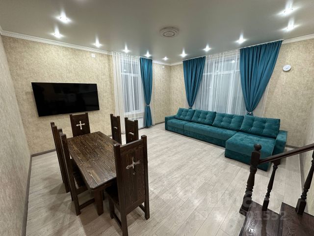 На первом этаже просторная гостиная с кухней, обеденные столы раскладываются до 8 метров, барная стойка, спальня, сан.узел. Кухня полностью оборудована быт. техникой (включая посудомоечную машину), посудой, в гостиной панорамное окно, большой диван, хорошая музыкальная аппаратура (есть микрофон) с цветомузыкой,кондиционер.