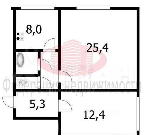 Общая площадь составляет 45,4 кв.м.