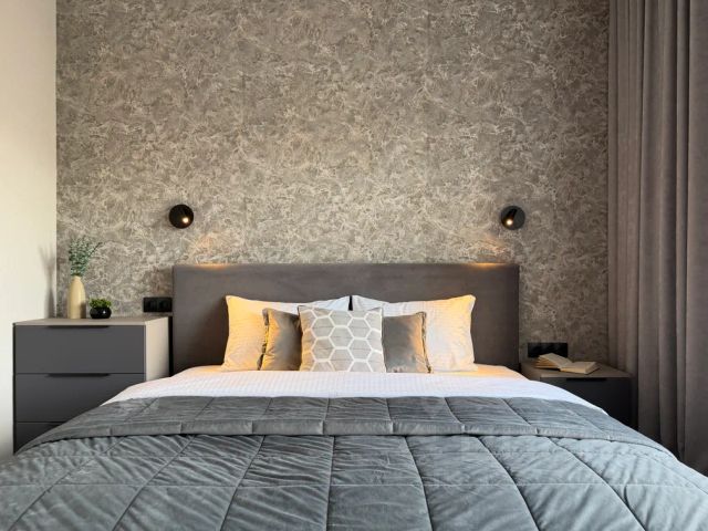 Для вашего удобства в отдельных комнатах одна двуспальная кровать и огромный диван. Блокирующие свет шторы помогут хорошо выспаться и восстановить силы. на уютной кухне вы с удовольствием позавтракаете в тишине. Кухня полностью оборудована всей необходимой посудой и техникой, для вас бутилированная питьевая вода, чай, кофе двух видов и вы сможете приготовить себе домашний ужин вы спокойно примите расслабляющий душ в чистой ванной, где для вас приготовлены мягкие полотенца и все необходимые гигиенические принадлежности