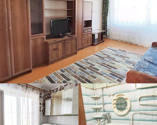 В квартире сделан косметический ремонт, она полностью готова для комфортного проживания. В наличии вся необходимая мебель: кухня меблирована, в комнатах тоже есть мебель, шкафы для хранения одежды, диван, кровати. Из техники в вашем распоряжении холодильник, плита, телевизор, микроволновка, стиральная машина, пылесос и утюг. Санузел раздельный, ванная комната оборудована ванной.
