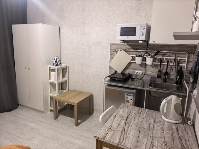 Сдаётся уютная студия площадью 27 кв. м на 15-м этаже 19-этажного кирпичного дома, построенного в 2016 году. Высота потолков составляет 2.7 метра. Окна выходят во двор, что обеспечивает тишину и спокойствие. Квартира с косметическим ремонтом, полностью меблирована. В комнате и на кухне есть необходимая мебель, а также вся необходимая техника: холодильник и стиральная машина. В санузле установлена ванна, что позволяет комфортно расслабиться после рабочего дня. Дом в хорошем состоянии, оснащён двумя пассажирскими и одним грузовым лифтом. Для вашего удобства предусмотрена наземная парковка и мусоропровод. Рядом с домом находятся детские сады, клиники и магазины, что делает проживание здесь особенно комфортным. Удобное транспортное сообщение позволяет быстро добраться до любых районов города. Аренда квартиры осуществляется напрямую от собственника, без комиссии. Залог и предоплата обсуждаются индивидуально. Аренда квартиры-студии в Красноярском крае недорого без комиссии (с фото).