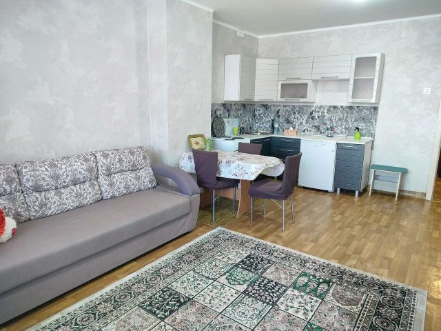 Сдается на длительный срок студия, чистая и уютная, диван, кухонный гарнитур, шкаф прихожая, стол, стулья, стиральная машина, холодильник, плита, духовка. оплата 17000 в месяц плюс счетчики, залог 10000 можно частями, комиссия 60% при заселении.