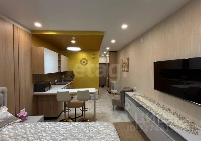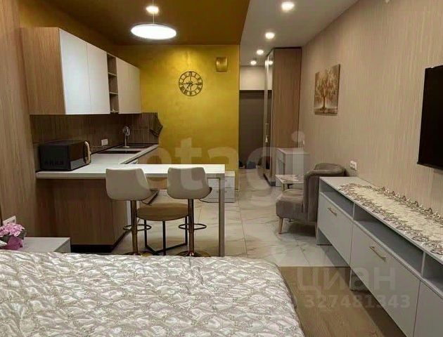 Сдаётся квартира студия на длительный срок.Можно с детьми.Чистый подъезд 4 лифта,видеонаблюдение и в доме консьержа.Рядом с домом находится кафе и рестораны , фитнес центр , студия красоты,торговый центр Планета,Red Sail, Енисейский рынок.Школа,детский сад. квартира находится на 23 этаже с шикарным видом.В квартире кровать,стол,стул ,шторы и ковры новые.Коммунальные услуги оплачивается арендатор.