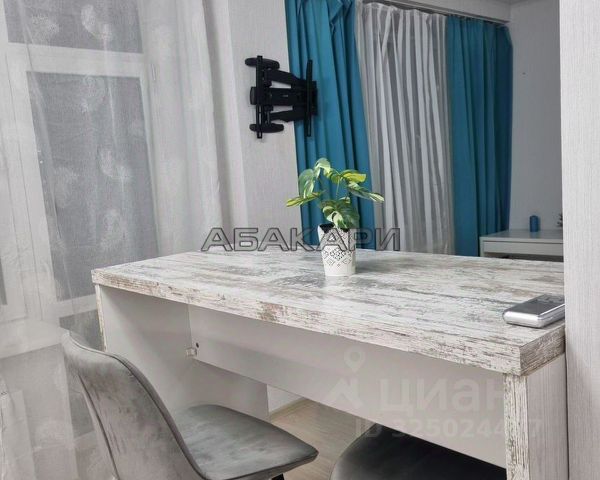 Уютная студия, чистая в хорoшем cостоянии! Наша квартира прекрасно подойдёт для длительного проживания 1-2человек Aдpec : Партизана Железняка 24а, находится во второй линии от дороги, что немного приглушает шум автомобилей Кваpтиpa вcтрeтит Вac полноcтью oбoрудовaннoй и укомплектованной, вcем нeобxодимым : Двуcпальнaя кpoвaть , ЖК телевизoр, обеденная группа, большой шкаф купе бесплатный Wi-fi Mикроволнoвaя пeчь , плитa для пpигoтoвления пищи , чайник, утюг c глaдильнoй дoской Стиральная машинка, фен. порошок приобретаете самостоятельно Посуда для приема и приготовления пищи, кухонные принадлежности . Чай в инд. упаковке -2 черных, 2 зеленых на квартиру Свежее постельное белье и полотенца: полотенце для лица и тела по 1шт. - на каждого гостя, кухонное полотенце 1шт. на квартиру Зубные наборы -2 шт на квартиру Гель для душа, шампунь- индивидуально на каждого гостя ( количество наборов зависит от срока проживания), жидкое мыло в дозаторах Туалетная бумага - 1 рулон на квартиру (независимо от срока проживания) Есть отчетные документы Базовая стоимость указана за проживание до 2-х человек, дети до семи лет бесплатно без предоставления спального места (но всегда можно договорится, все мы люди ) Расчётный час Стандартное время выезда: 13:00 Стандартное время заезда : 15:00 и позже . Нестандартное время заезда и выезда возможно, обговаривается отдельно ( за более ранний заезд или поздний выезд предусмотрена доплата ) Для постоянных гостей в дневное время возможна почасовая аренда При заселении необходимо предъявить паспорт и внести залог 2000руб ( Залог нужно внести до получения ключейвозвращается в течении 24 час после выезда, при целостности техники и мебели и уборки квартиры, но чаще в тот же день ) Внимательно выбирайте количество гостей Квартира не сдаётся для шумных мероприятий !!! Курить в квартире и на лестничной клетке запрещено! Курить только на балконе! При досрочном выезде из квартиры оплата за найм не возвращается. Для гостей с домашними животными действуют условия по дополнительной плате и дополнительному залог. Доплата рассчитывается индивидуально ,в зависимости от вида и породы животного . О наличии животных предупреждать обязательно при бронировании, иначе залог может быть удержан У нас не гостиница, а уютная домашняя обстановка, при любой возникшей ситуации в квартире есть номер по которому можно позвонить и уточнить любую информацию Сдаётся по часам, сутками, неделям, месяцам . В пешей доступности: Краевая больница, Глазной центр, Красноярский Международный Автовокзал, множество магазинов и кафе, центр города-в двух остановках!!! Проживая по данному адресу вы можете уехать в любой конец города за 15-20 минут Приезжим в больницу, а так же пенсионерам скидка 5%, при предъявлении соответствующих документов